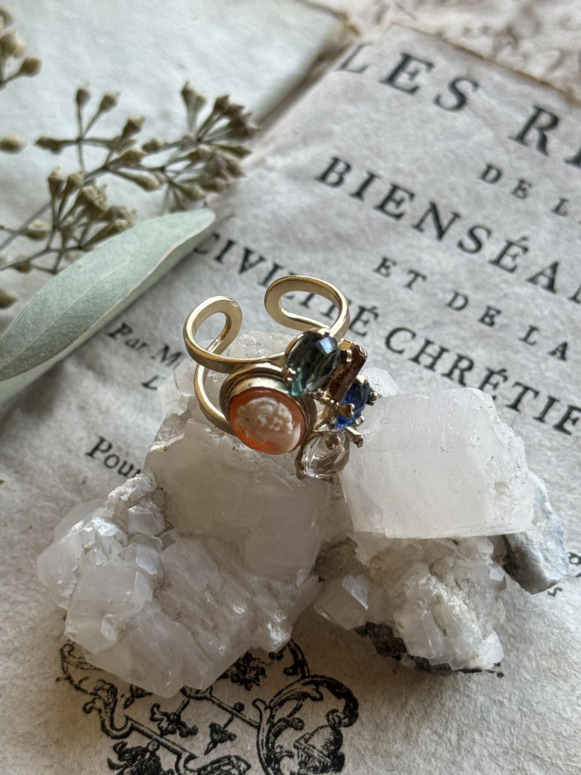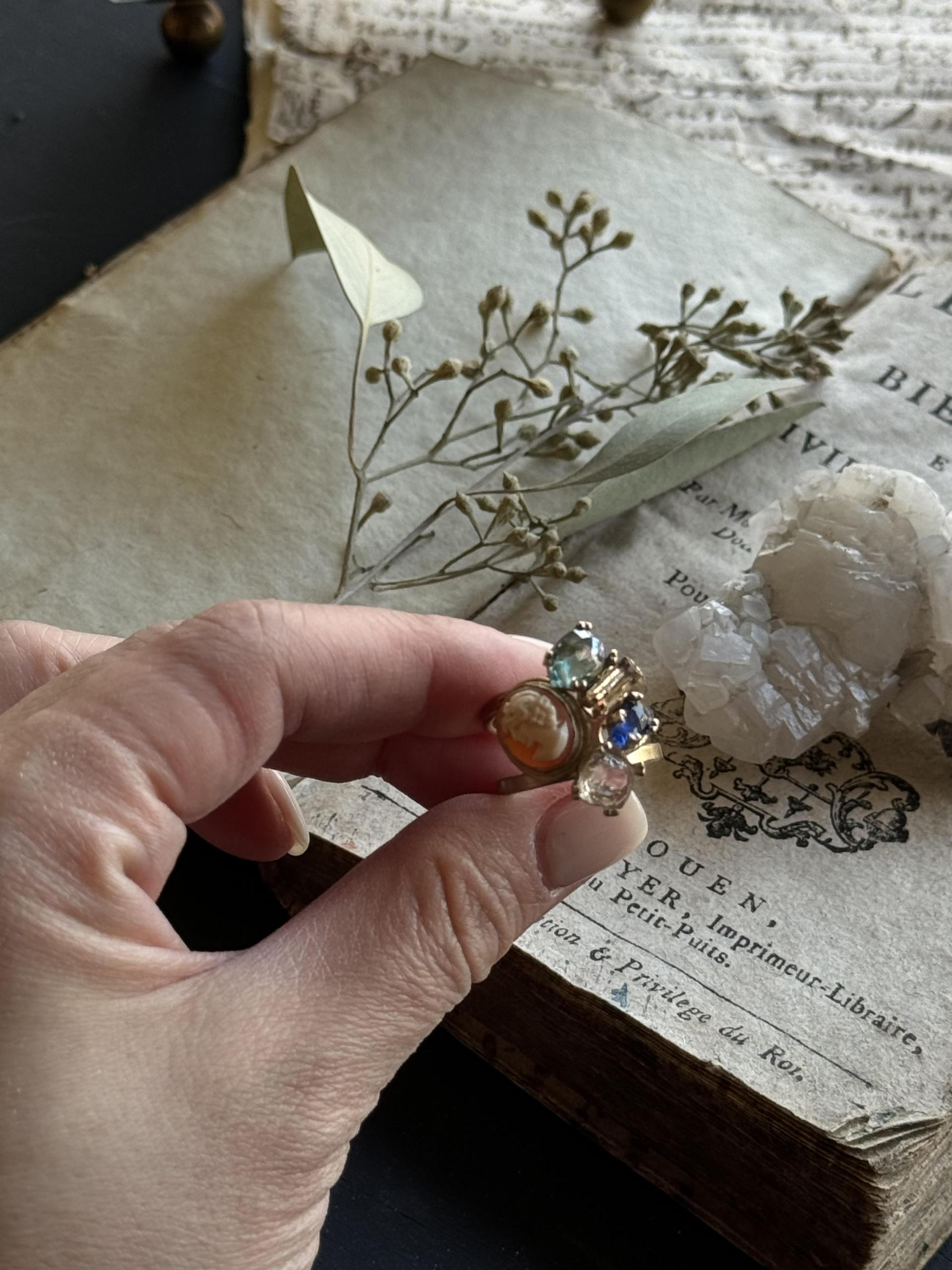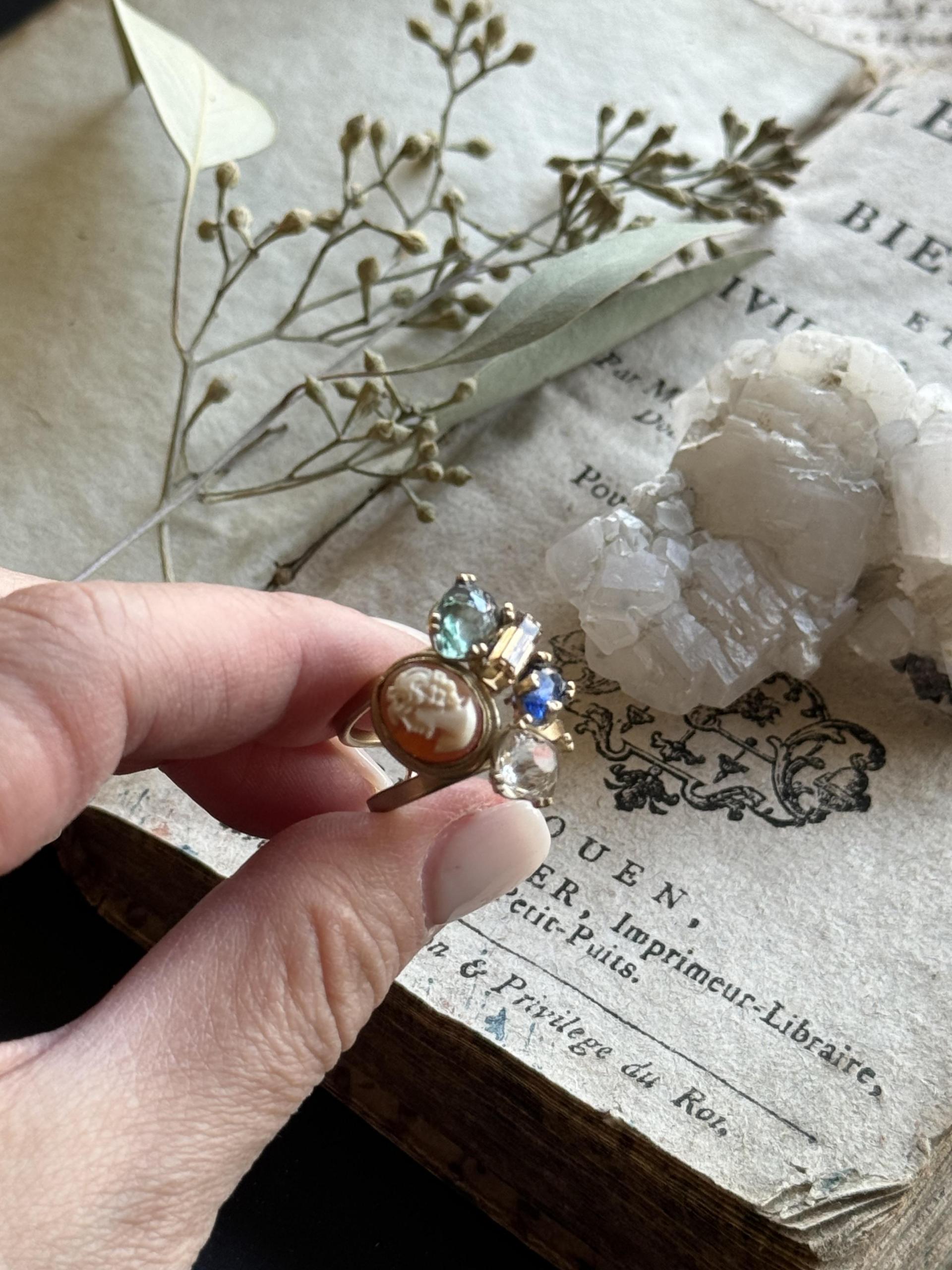 - 1890's vintage shell cameo & semi precious stones