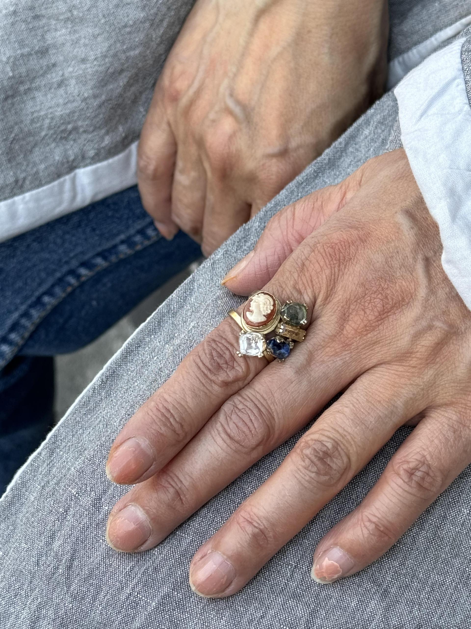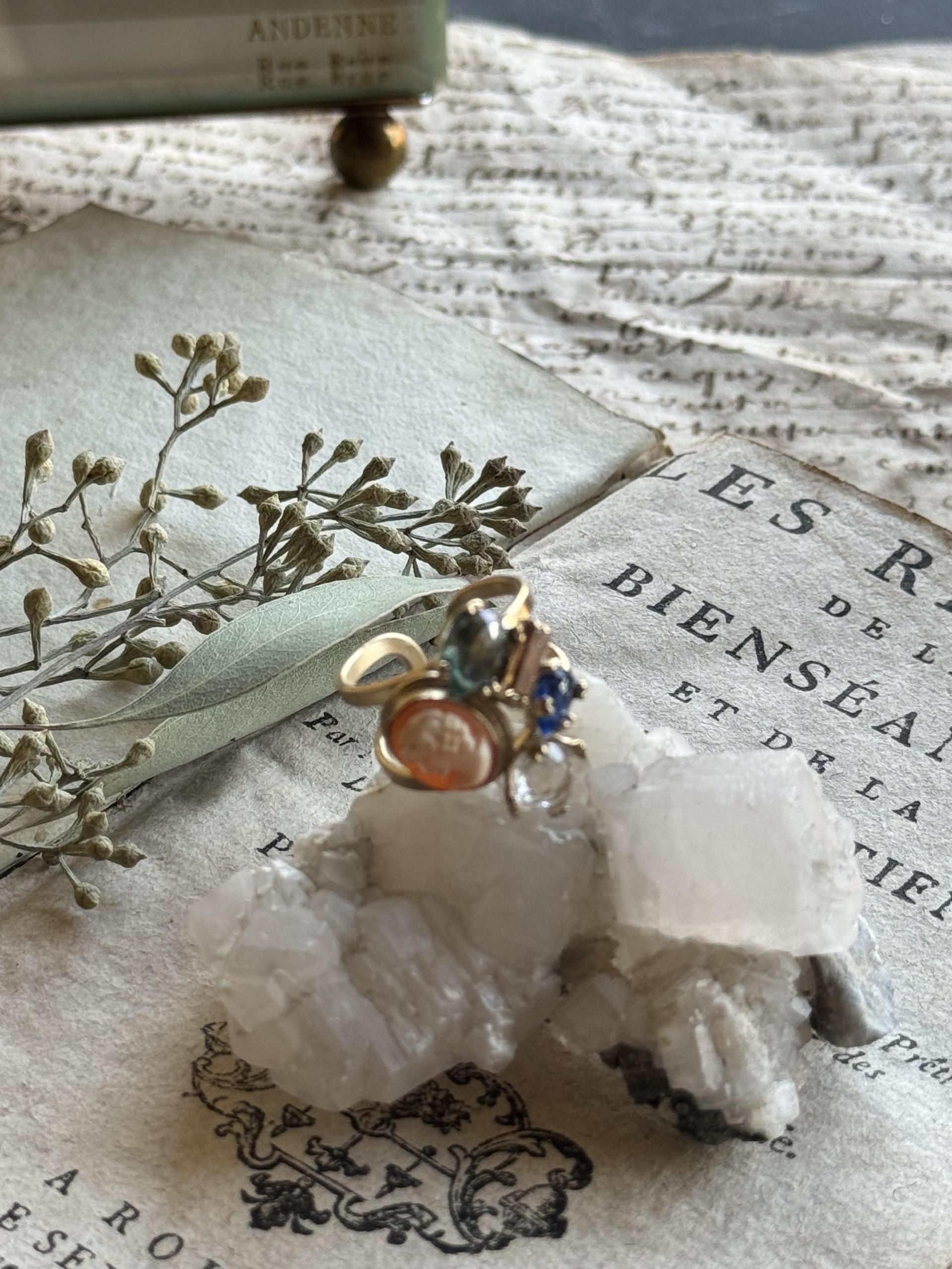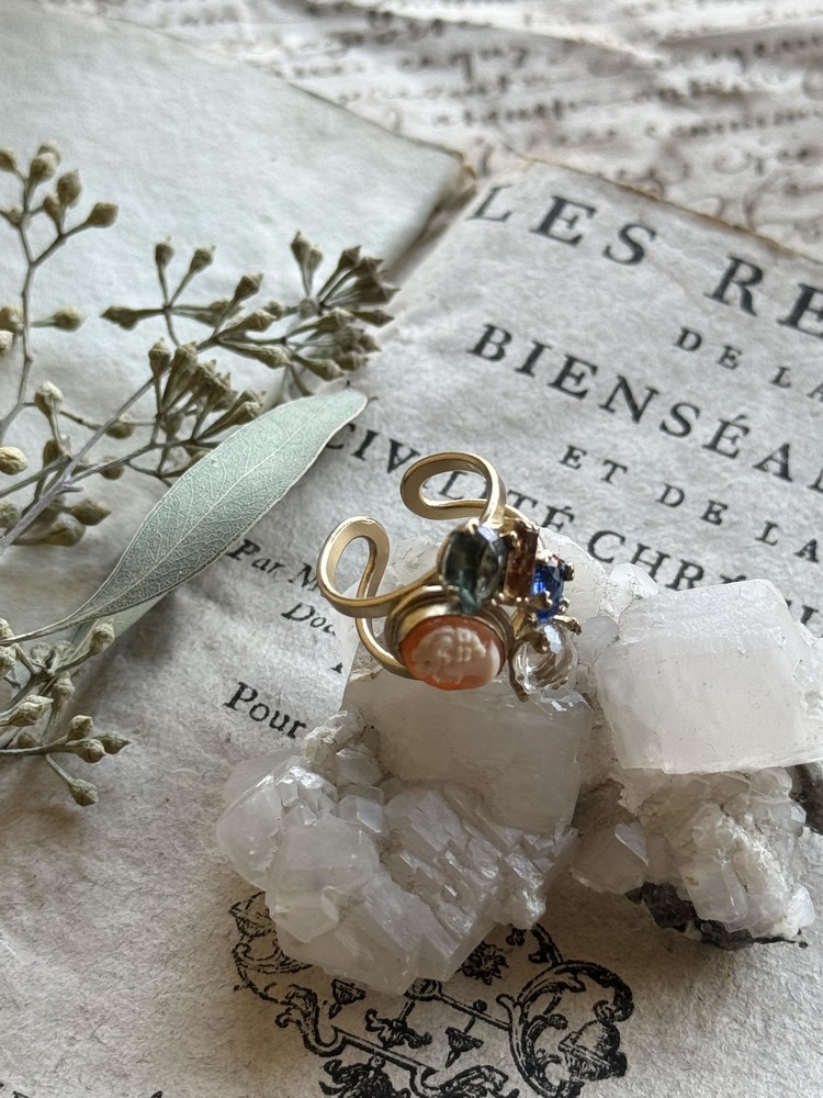 - 1890's vintage shell cameo & semi precious stones