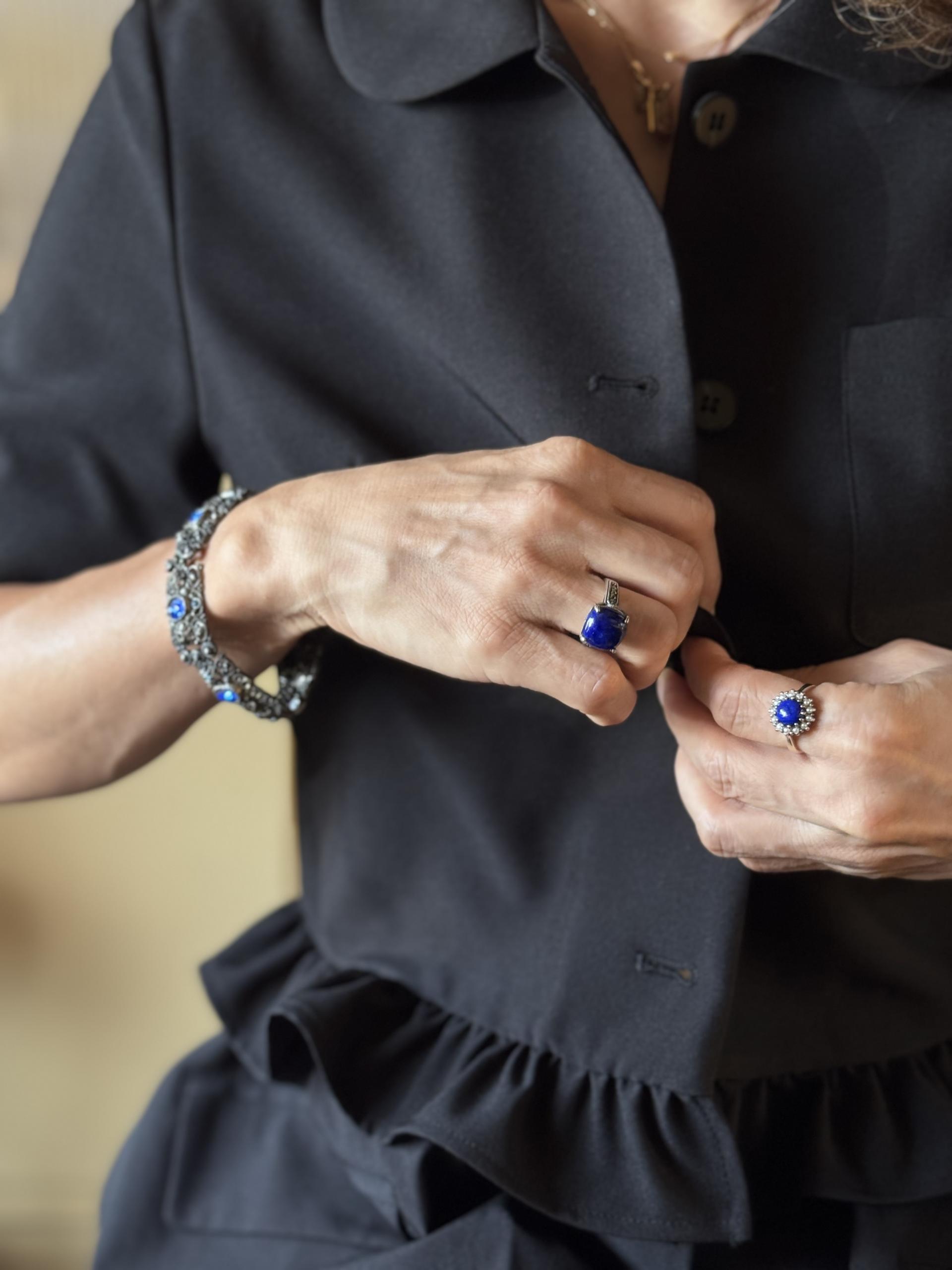 - Lapis Lazuli stone & 925 silver, Freshwater pearls