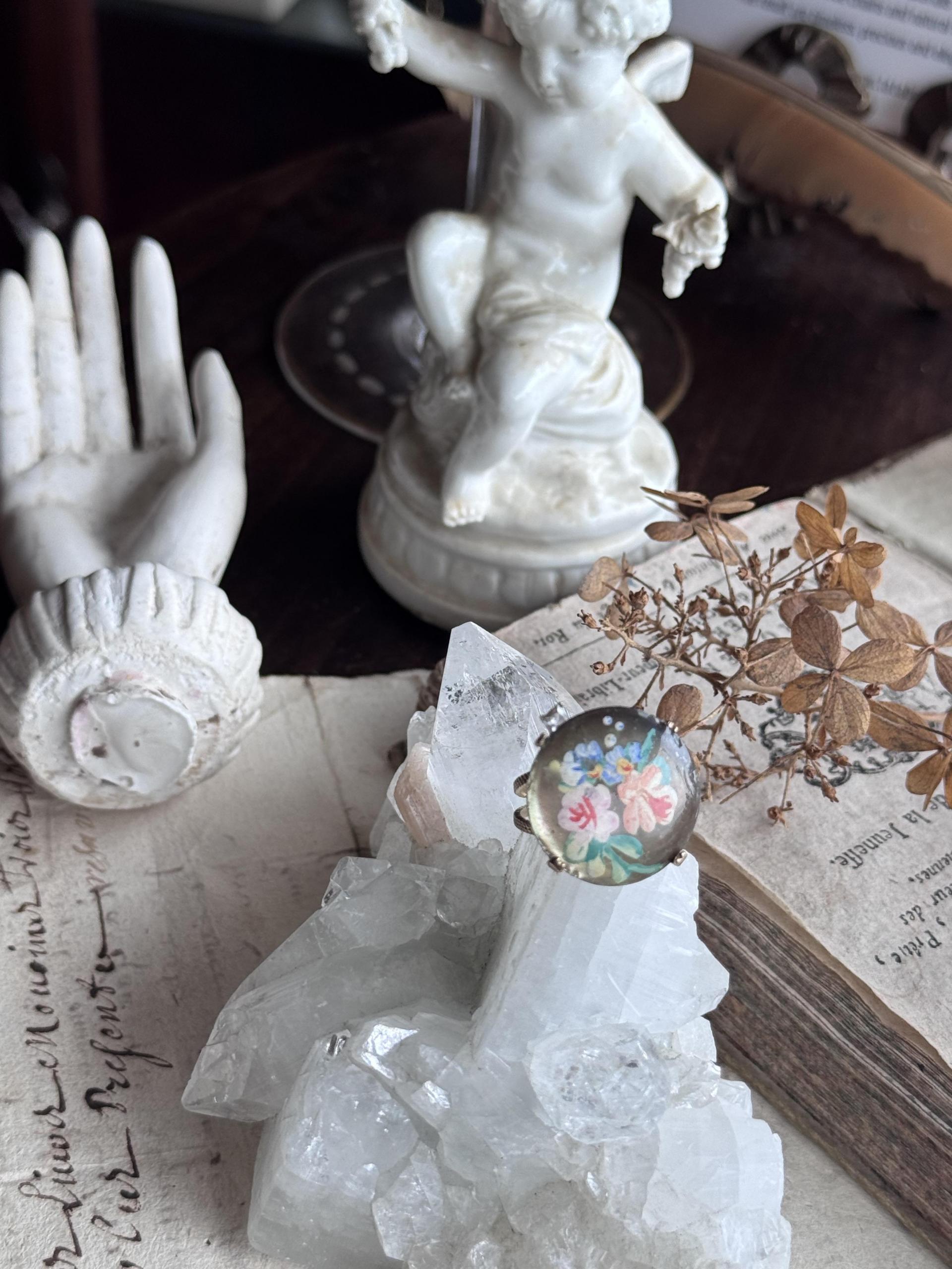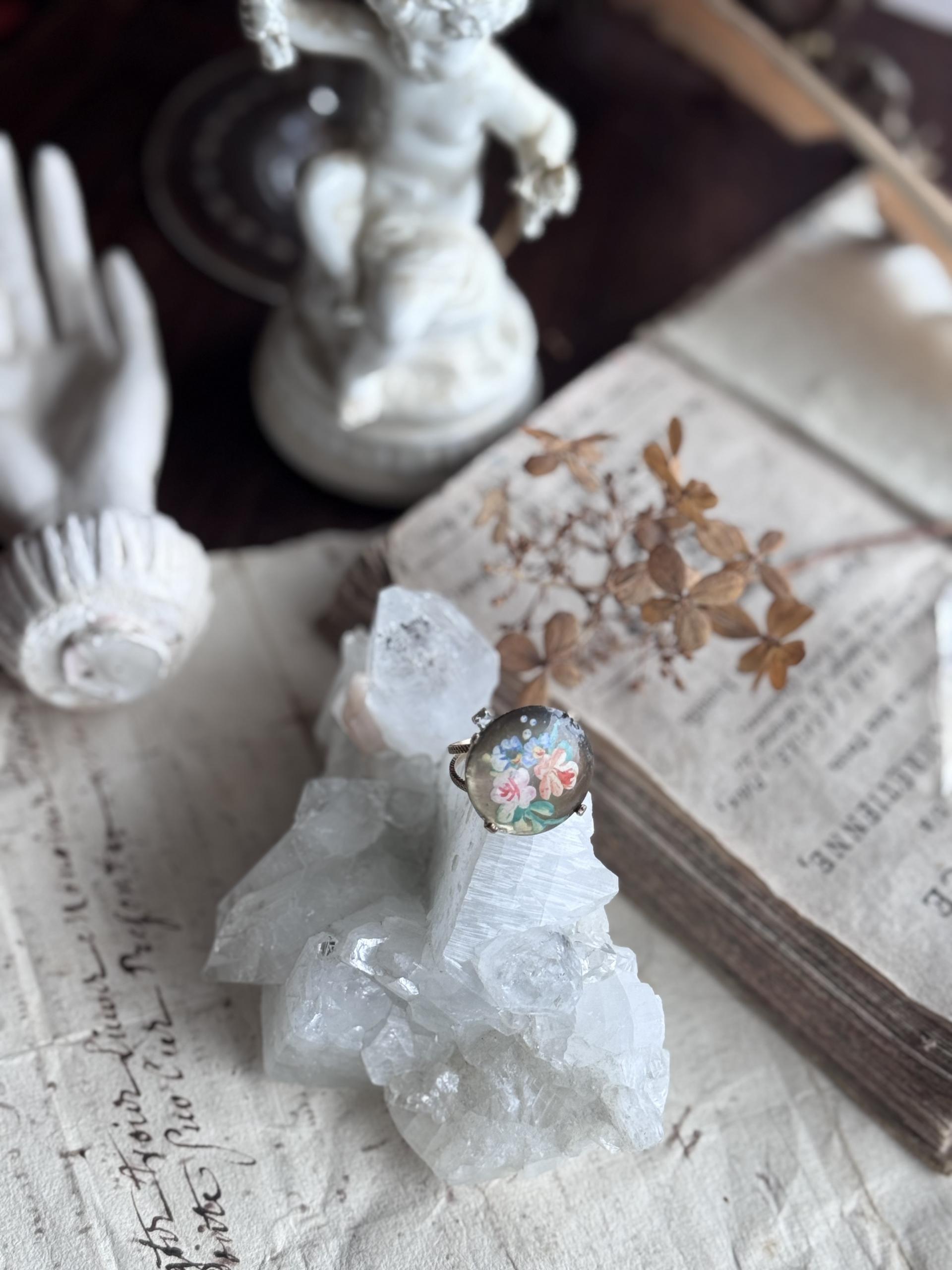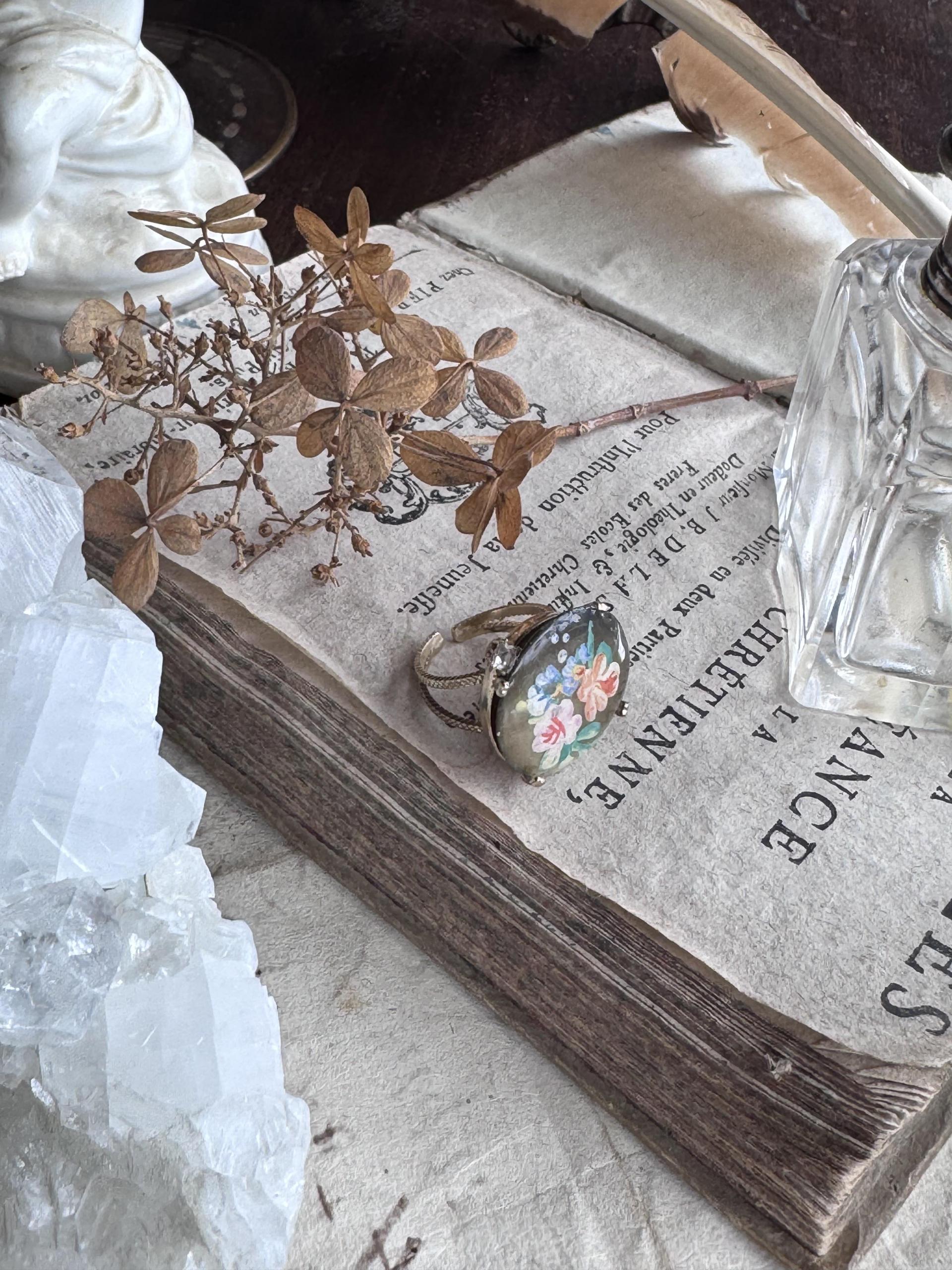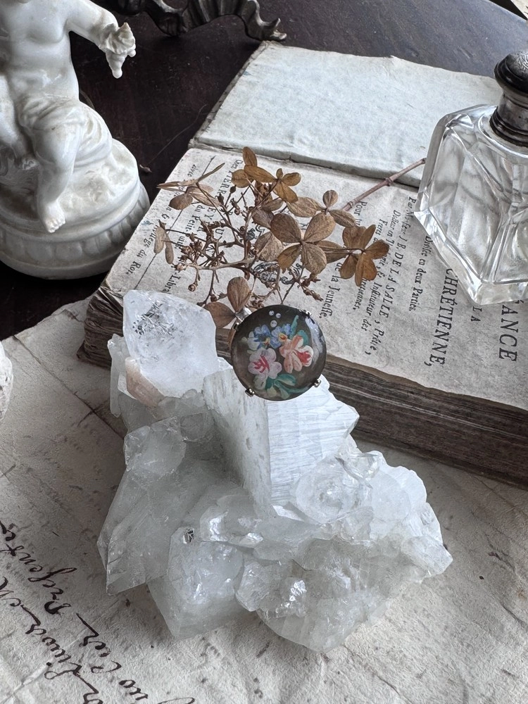 <JuncoParis๐ซ๐ท> 1930โs hand painted flower motif shell pendent ring