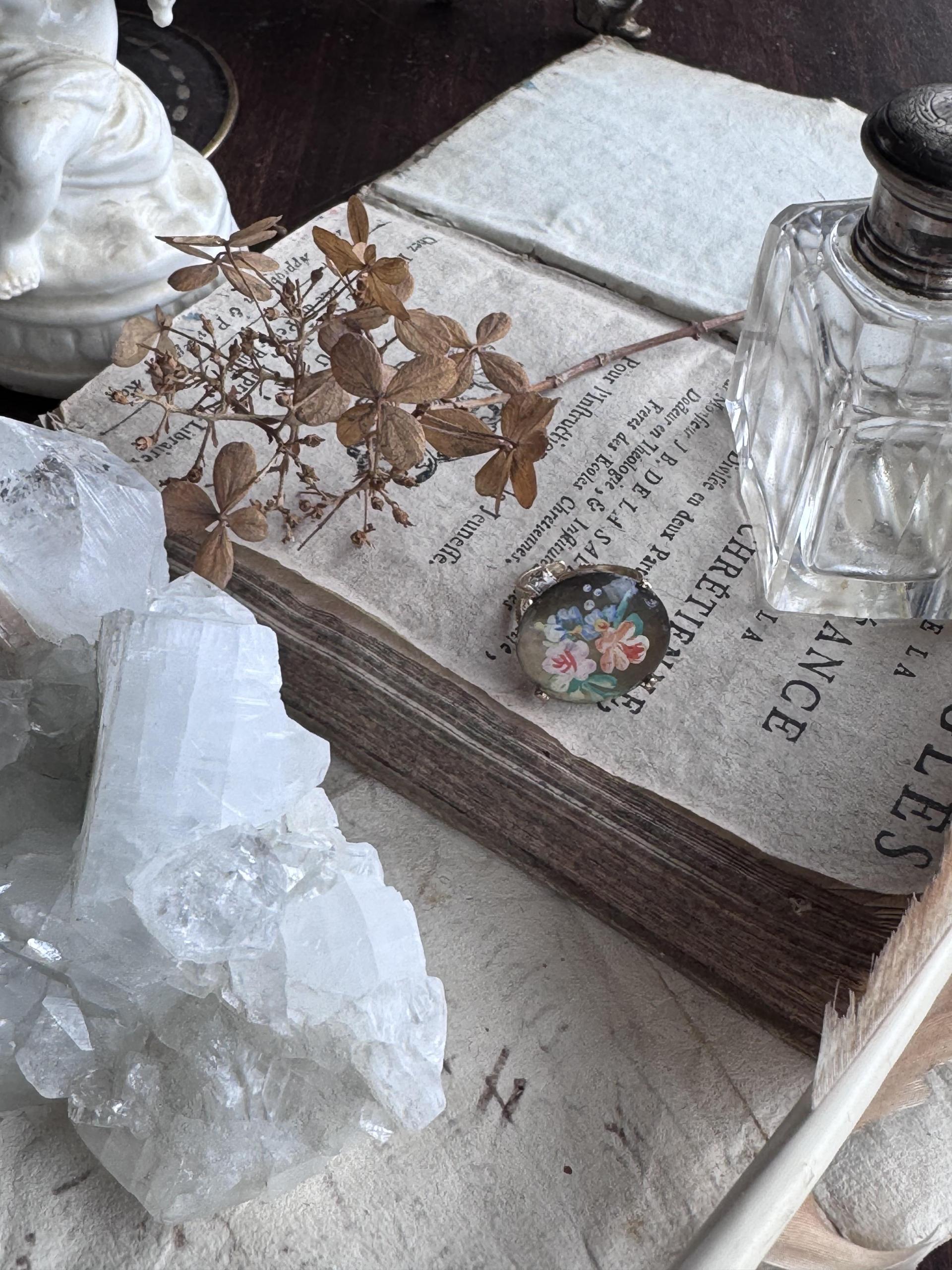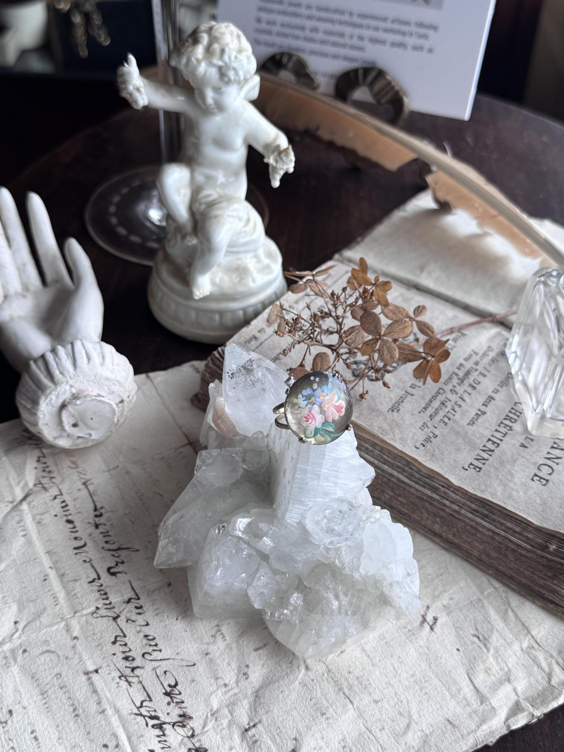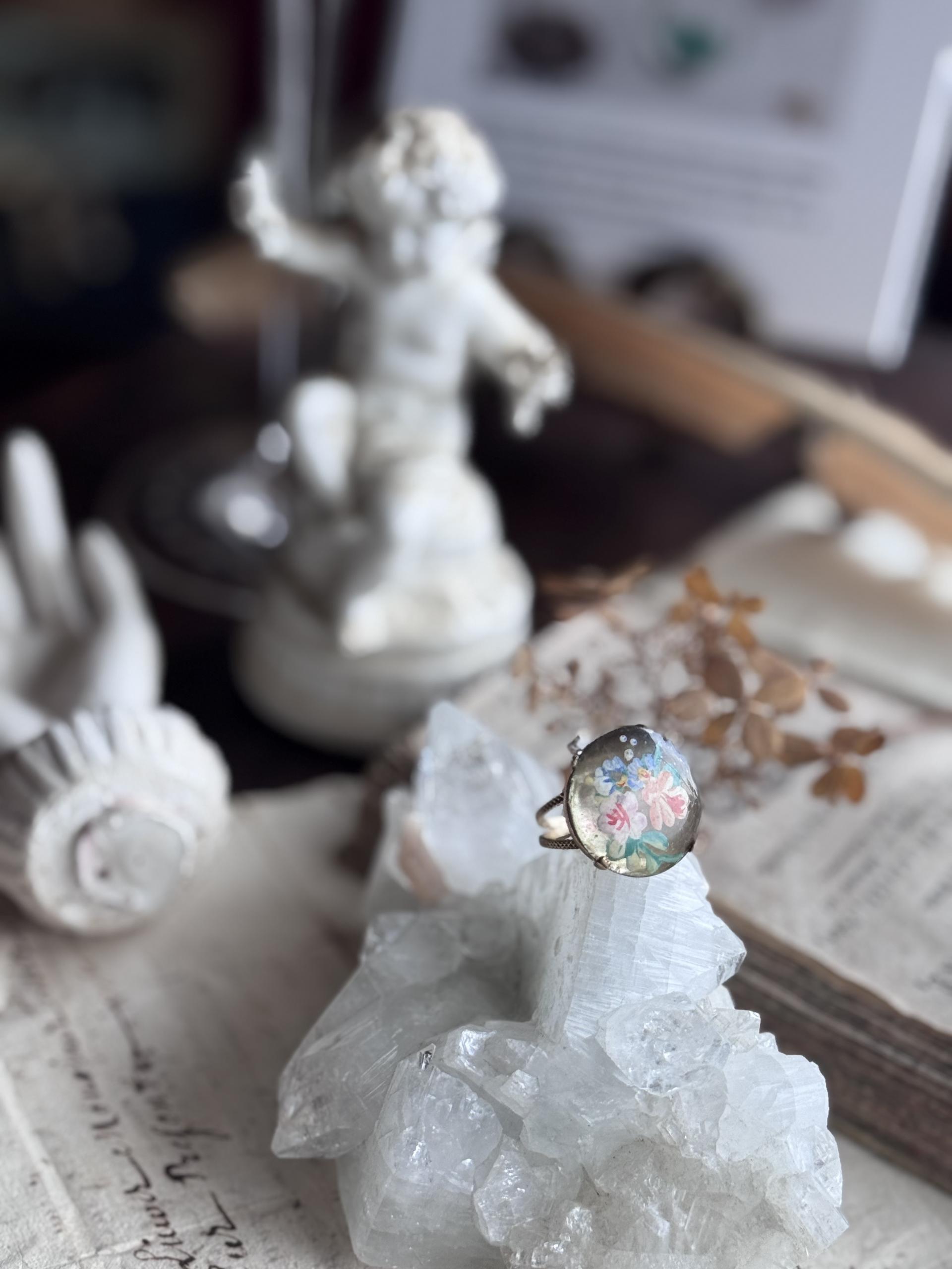 <JuncoParis๐ซ๐ท> 1930โs hand painted flower motif shell pendent ring