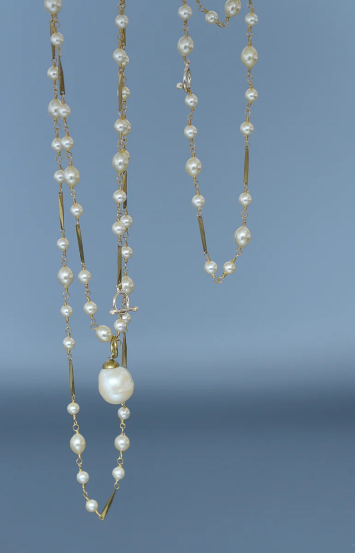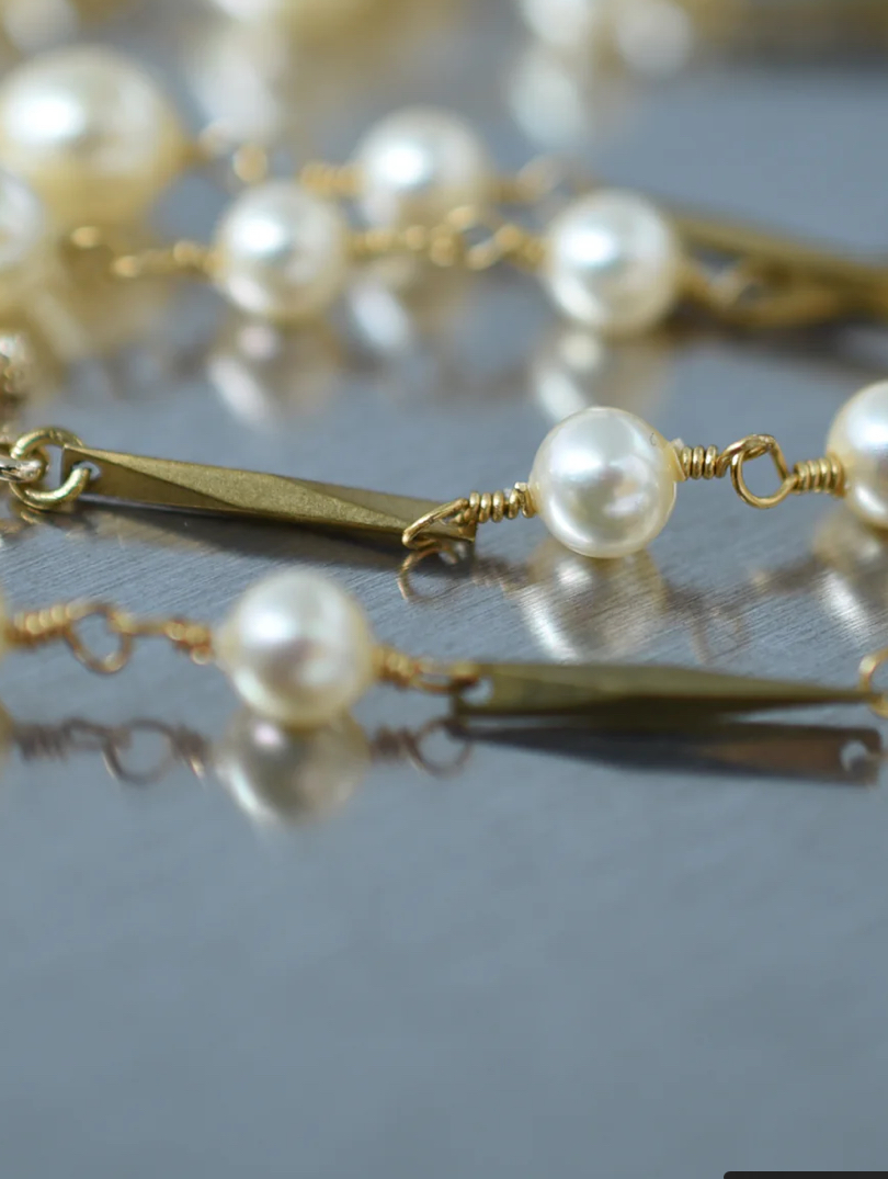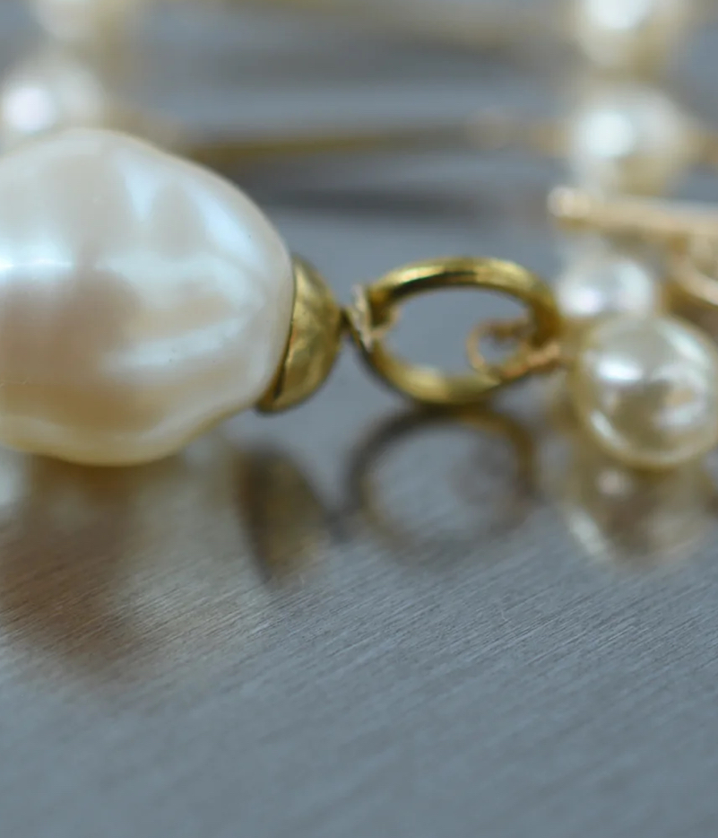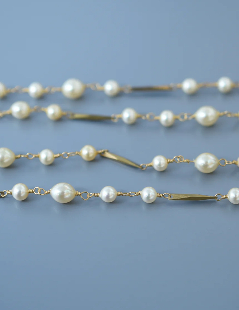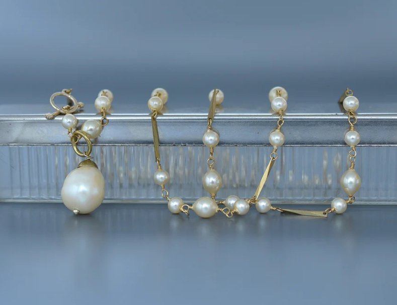 골드 파트와 펄을 와이어로 하나하나 연결한, 매우 섬세하고 고급스러운 아이템입니다.