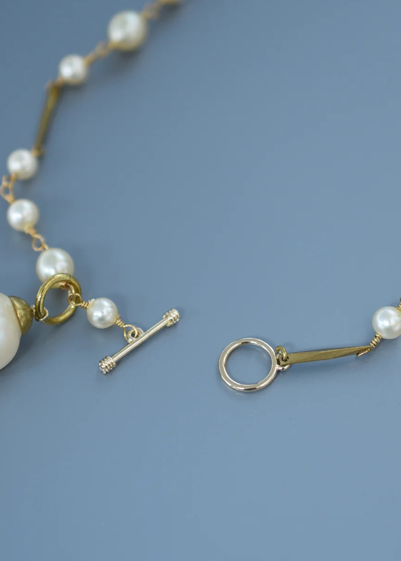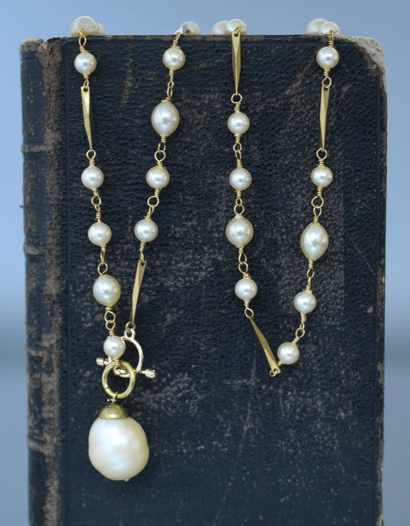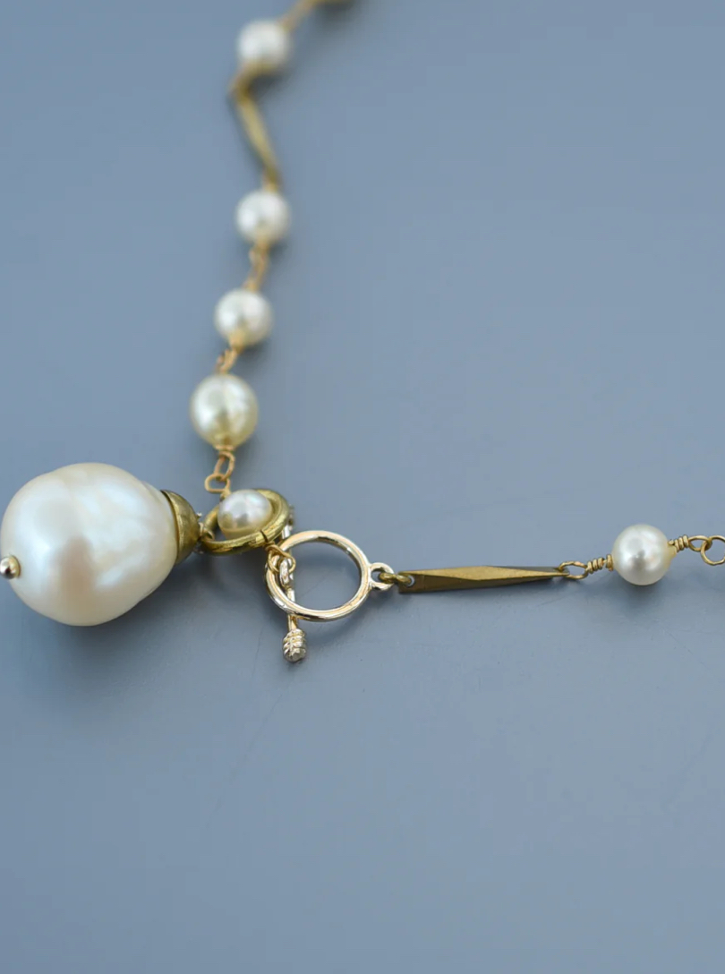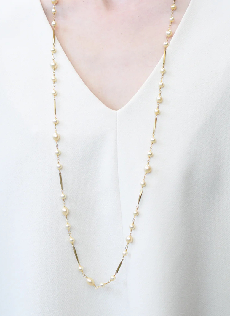 골드 파트와 펄을 와이어로 하나하나 연결한, 매우 섬세하고 고급스러운 아이템입니다.