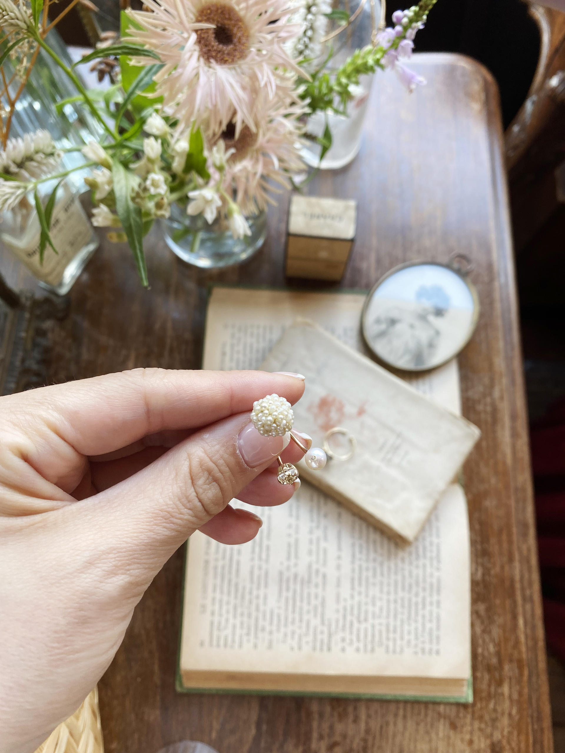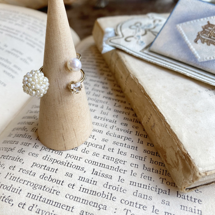 Pompom pearl ring
