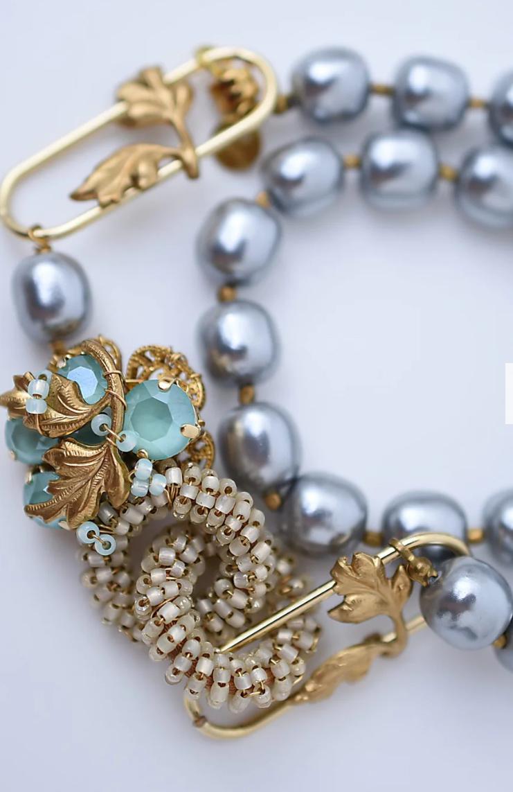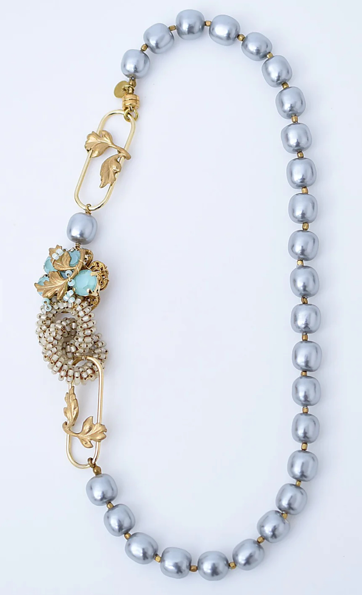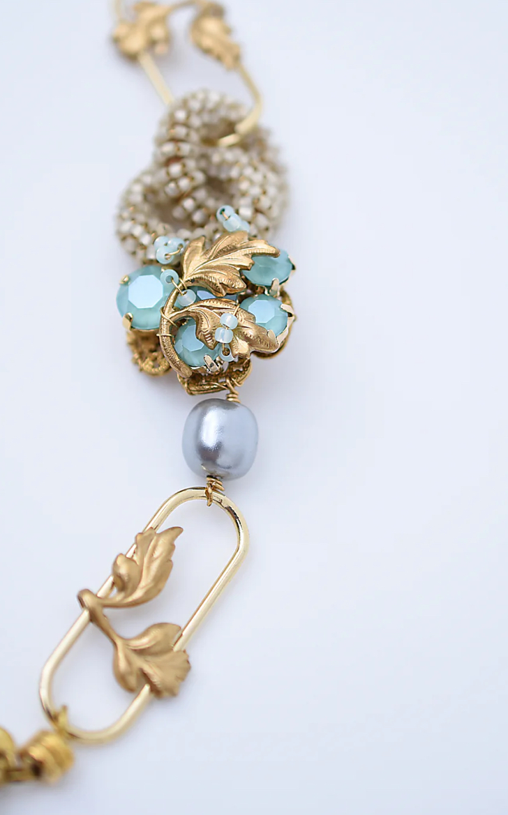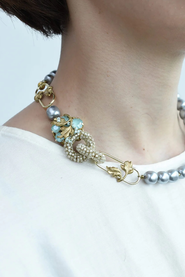 -balsa pearl,1970’s vintage parts,glass beads,brass,& swarovski stones